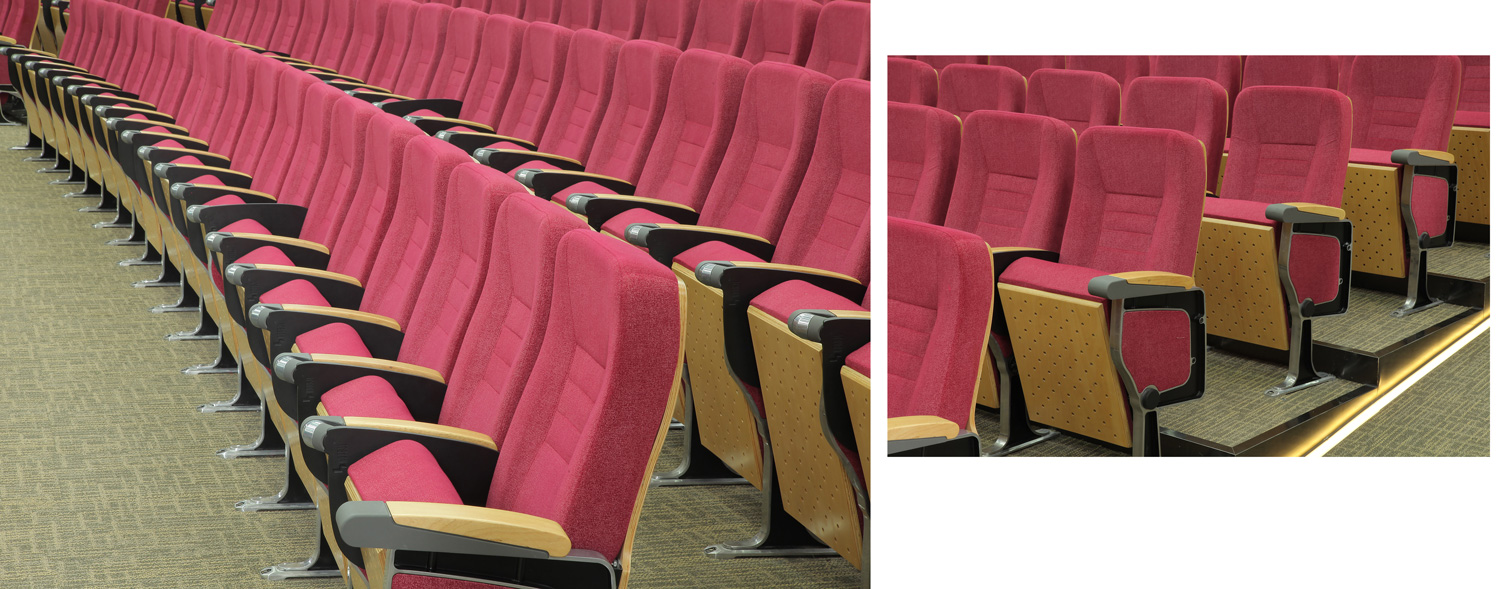 該座椅的設計座感舒適,符合人體工程學原理,安裝、維修方便。采用高檔柔性面料和高密度超軟PU冷發泡定型海綿,整體造型外觀飽滿,沉穩大方;可為禮堂、歌劇院等最佳首選之一。